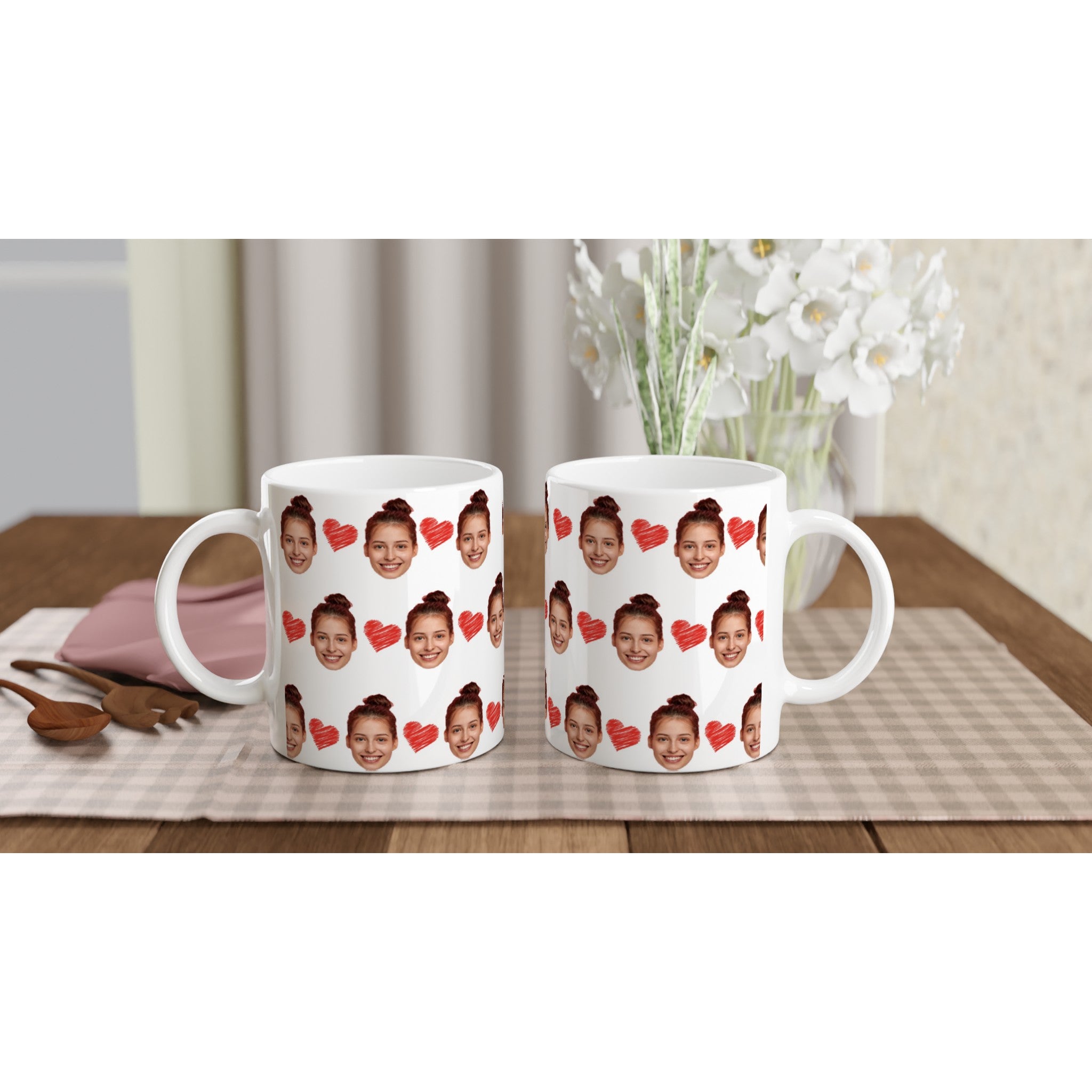 Diese lustige Foto-Tasse ist ein gelungenes Geschenk für alle Gelegenheiten. Alles, was Sie tun müssen, ist diese Tasse zu bestellen und uns ein Foto der Person zu schicken, deren Gesicht mit Herzen auf die Tasse gedruckt wird, und wir erledigen den Rest.