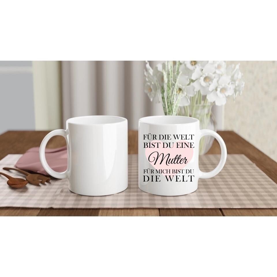 Spruch auf der Tasse: "FÜR DIE WELT BIST DU EINE MUTTER FÜR MICH BIST DU DIE WELT"